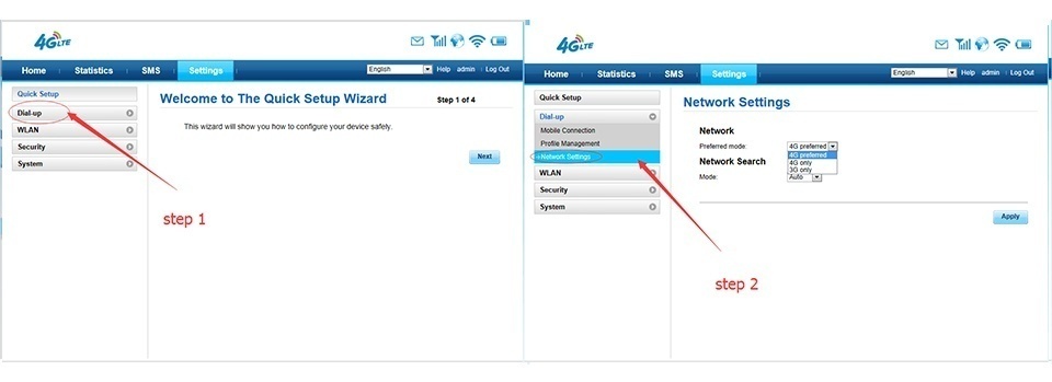 3.If signal is unstable, you can also manage the settings page, lock 4G or 3G network, can effectively improve the stability of the network.